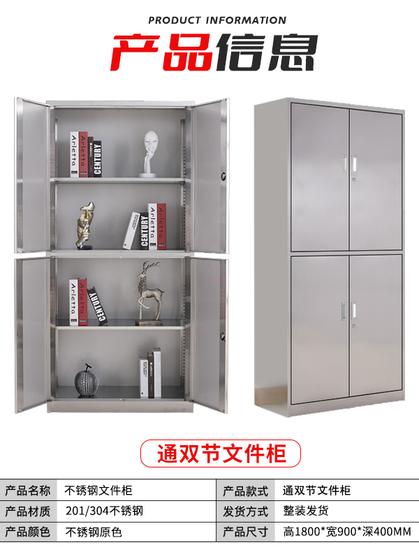 不銹鋼文件柜通雙節